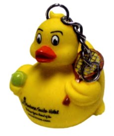 The tennis rubber duck keytag measures 1 1/4" X 1 1/2" X 1 1/2" and it provides an imprintable area of 5/8" X 5/16". Less than $ 1.60 each in the minimum imprintable quantity of 50.