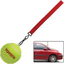 The Smart Park is an easy way to always park your car in the garage in the same position every time. You can hang your Smart Park from the overhead area of your garage and this will enable you to always align your motor vehicle up with the hanging tennis ball which will gently touch your windshield when you have properly positioned your motor vehicle in the garage. The imprint on the tennis ball is 1 3/4" X 3/4" and the product is a great fund raiser. Minimum order is 100 and they are less than $ 5.60 each in that quantity.