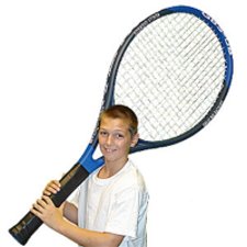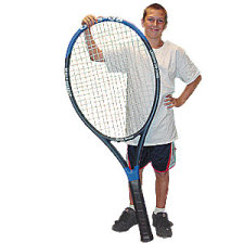 The giant tennis racquets are just right for that big game. They are 55 inches tall and have a 23 inch wide head. Minimum order is just one. Call us at 800 960-9080 for current pricing.