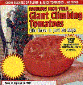 Our Giant Tomato seeds can grow tomatos up to seven pounds each. The tomato has excellent flavor and you r customers will have fun watching their tomato plants grow !! We are out of the tomato seed packet samples that we have been giving out for the past month and do not expect a new shipment this season.