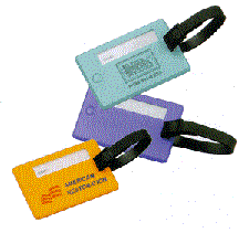 Now it is easy to distinguish your luggage from anyone else's with these bright neon plastic luggage tags. Large imprint area so your message will be noticed. Black or asorted neon colors of aqua, oreange and purple are available. The address and phone number are hidden for security reasons on the luggage tags. Imprint area is 3"wide X 3/4" high and the minimum imprintable quantity is 150.