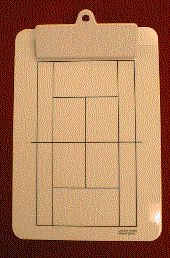 Our Volleyball Clipboard is a great item for coaching clinics, awards and volleyball associations. The Clipboard is available in either a 9" X 16" or 9" X 13" and can be imprinted on a choice of round clips, square clips, rectangular clips, wire clips, metal clips or a calculator clip. The board clipboard has an eraseable coating and even the front where the volleyball lines are on in the picture can be imprinted.. Also the back of the clipboard can be imprinted too. The minimum imprintable quantity is only 50. We also have Sports Clipboards for Basketball, Baseball, Bowling, Field Hockey, Football, Hockey, Racquetball, Soccer and Tennis. These Clipboards are in color and all have the line markings of that particular sport.