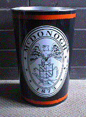 Here we have the front and back side of the Wastebasket done by a school. Just give us your school crest or logo and we can put it on the Wastebaskets. These are great fund raisers as you can order as low as 36.