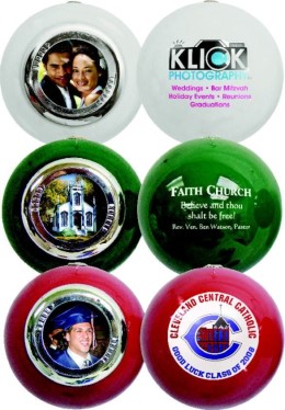 The round 3 1/4" shatterproof satin finished Holiday ornaments can be custom imprinted for your business, school or organization. Great product for Fundraisers, Store decorations, Keepsakes, Family reunions, Employee gifts, Customer appreciation, Wedding favors and Company parties. Available in ornament colors of Gold, Blue, Red, White, Green , Purple and Clear. The imprint area on the ornament is 1 3/4" in diameter All ornaments come in a Happy Holiday gift box or a plain box.. Have a question call us at 800 960-9080 or email us at donace@promotionalproductsandideas.com