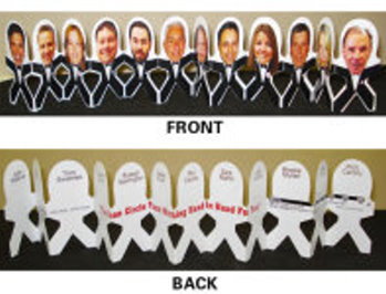 The 12 pt. posterboard Paper Doll Chain can be customized with up to 12 different people or products on each chain in full color. On the back side you may have the bio of each individual or product.